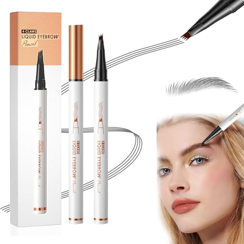 Magic Eyebrow Pencil, 3D Waterproof Eyebrow Pen, Long-Lasting Liquid Brow Pencil with 4 Micro-Fork Tip, Sweat-proof Eyebrow Pencil for Natural Eyebrow Makeup (Gray)