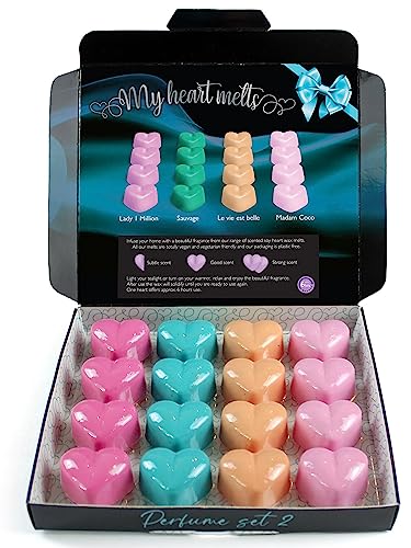 Mixed Perfume Wax Melts 2 : 16 Heart Shaped Melts in a Presentation Gift Box 4 of Each Madam Coco, Lady 1 Million, La Vie Est Belle, Sauvage