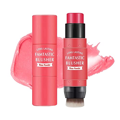 Cream Blush Stick, Matte Creamy Blusher Makeup,Glow Blushing Rose Pink Makeup,Brighten Illuminating Cream, 3-in-1 Professional Face Blusher Make Up, Highlight & Sculpt for Cheeks Lips Eyeshadow