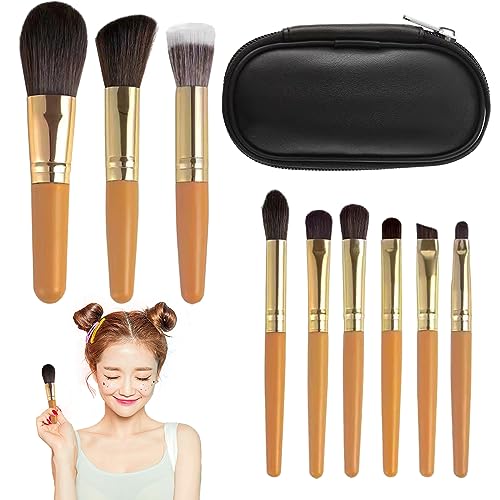 9 PCS Mini Makeup Brushes Set,Portable Travel Make Up Brush with Storage Case for Foundation Brush Blush Powder Eye Shadow Cosmetics