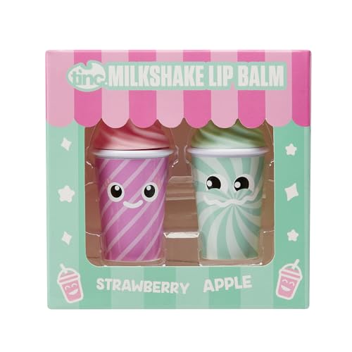 Tinc Milkshake Lip Balms for Kids Flavoured Fruity Scents, Strawberry, Apple, Keeps Lips Moist, Perfect Party Bag Treat, Two Flavours