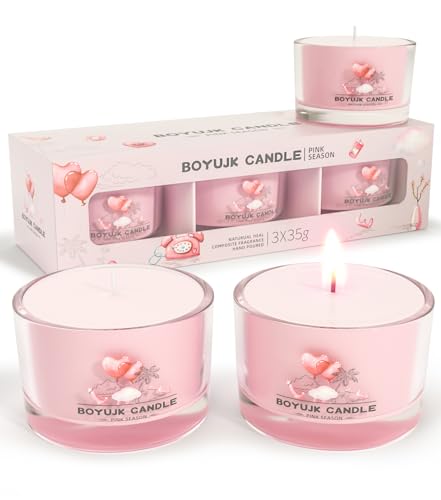 Scented Candles Gift Set for Anxiety | 3 Scented Filled Votive Candles | Relaxation Gifts for Women (Pink Season Collection)