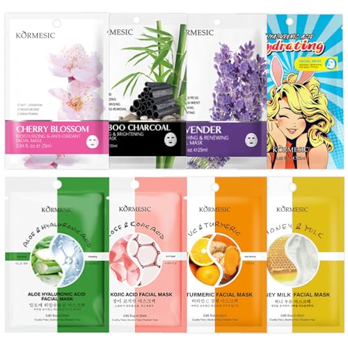 Ninnyi 8PCS Korean Face Mask Sheets Set, Facial Masks Skincare Sheet Multipack for Beauty Hydrating Nourishing
