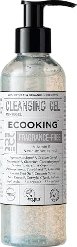 Ecooking Fragrance-Free Face Cleansing Gel with Organic Sunflower Oil, Vitamin E & Cucumber Extract 200ml | Normal, Oily & Sensitive Skin Cleanser | Blemish Control & Makeup Remover