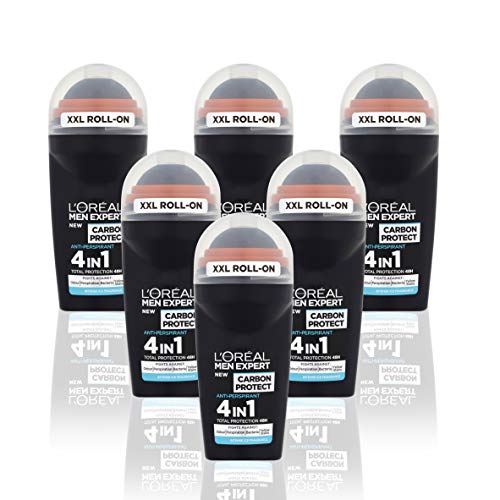 L’Oréal Paris Men Expert 48H Carbon Protect Anti-Perspirant Roll On Deodorant for Men, 50ml Pack of 6, Bulk Buy