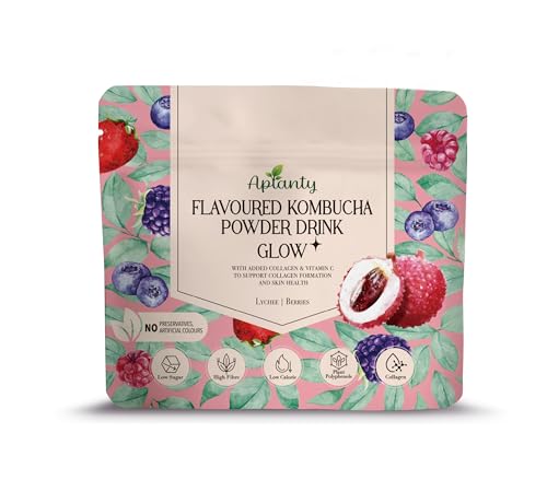 Aplanty® Sparkling Kombucha Glow+ / on-the-go powder drink/Live Cultures/Low Calories/Low Sugar/Gut Health/Type 1 hydrolysed marine collagen peptide/Skin, Nail, Hair/ 5g x15 servings