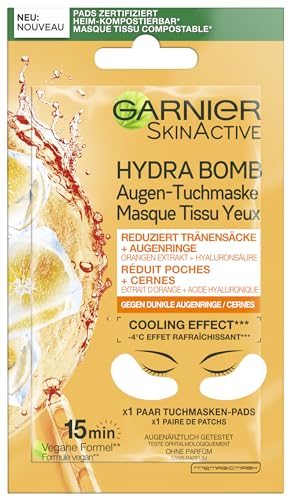 Garnier Eye Cloth Mask – Moisturising – Against Dark Circles – Reduce Bags – Vegan Formula with Orange Extract and Hyaluronic Acid – Hydra Bomb – 6g