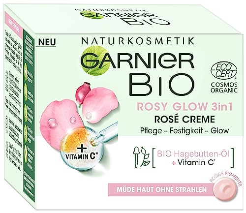 Garnier Face Cream, Bio Rosy Glow 3-in-1 Rose Cream, for tired, dull skin, gives the skin a youthful glow, nourishes and firms the skin with organic rose hip oil and vitamin C, 50 ml