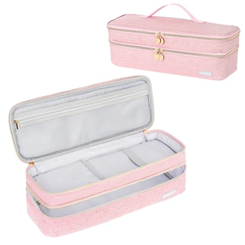 Double-Layer Travel Carrying Case Compatible with Revlon One-Step Hair Dryer Brush/Dyson Airwrap Styler/Volumizer/Hot Tools,Portable Storage Organizer Bag For Shark FlexStyle Attachment,Pink(Bag Only)