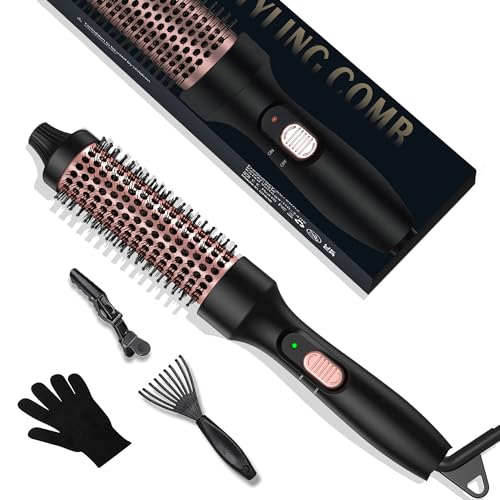38mm Thermal Brush Curling Brush,Hot Brush Volumizing Heated Brush Curling Iron,LCD Display 10 Temps 120-210℃ Heated Round Brush,Double Voltage Travel Curling Brush,Hair Straightener Curler