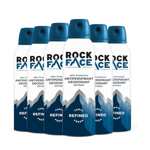 Rock Face Refined Antiperspirant Deodorant Multipack of 6 200ml | Sandalwood & Cedar Scent | Fast Absorbing | Non-Staining | 48 Hour Protection (Packing May Vary)