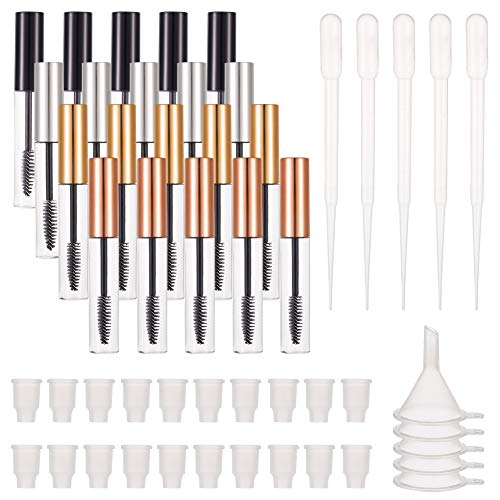 umorismo 20 Pcs 10ml Mini Mascara Tubes Empty Mascara Tube and Wand, DIY Mascara Container with Eyelash Wand, Inserts, Funnels for Castor Oil, Cosmetics Supplies