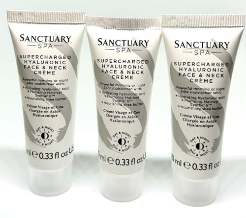 Sanctuary Spa Supercharged Hyaluronic Face & Neck Creme, 10ml, Triple Pack