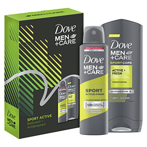 Dove Men+Care Sport Active Duo body wash and anti-perspirant in a stylish gift box Gift Set perfect gifts for him 2 piece, White