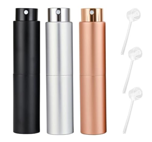 Fia Direct 8 Ml Twist Up Rotary Perfume Atomiser Aftershave Travel Refillable Bottle Portable Handbag Spray (Black/Silver/Rose Gold (3 Pack), 8 ml)