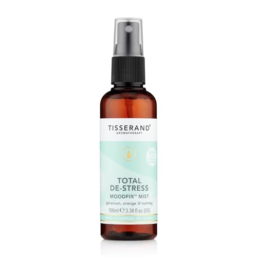 Tisserand Aromatherapy – Total De-Stress – MoodFix Mist – Orange, Geranium, Nutmeg – 100% Natural Pure Essential Oils – 100ml – Calming Mist Spray