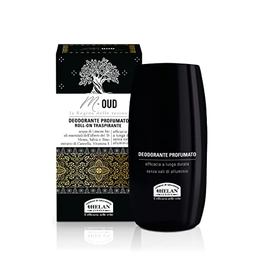 Helan, M Oud, Men’s Deodorant Roll-On Scented and Breathable – Fresh and Skin Gentle Deodorant, without Aluminum Salts, with Essential Oils – Long Lasting Action, 50 ml – Made in Italy