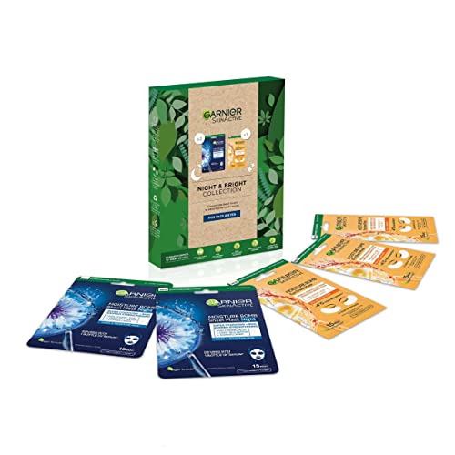 Garnier Sheet Masks Self-Care Collection, Gift Set With 5 Face & Eye masks, Pampering Beauty Gift For Her, Christmas Gifts for Men & Women, Vegan & Biodegradable Sheet Masks