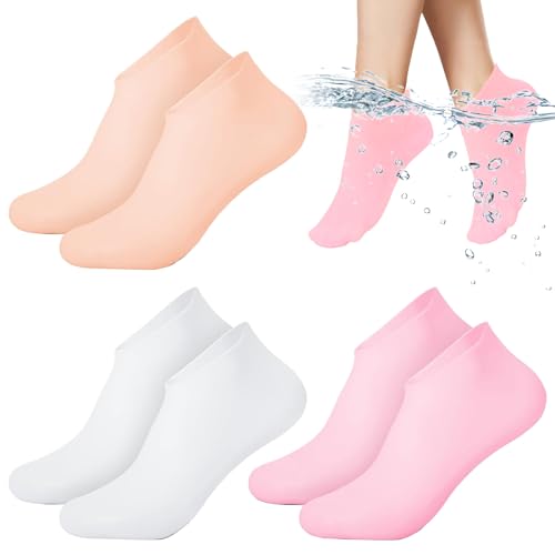 Neyeau Silicone Moisturizing Socks, 3 Pairs Silicone Pedicure Socks, Women Foot Spa Pedicure Exfoliating Foot Mask, Beach Anti-Slip Silicone Socks for Repairing Cracked Heel Dry Feet Calluses