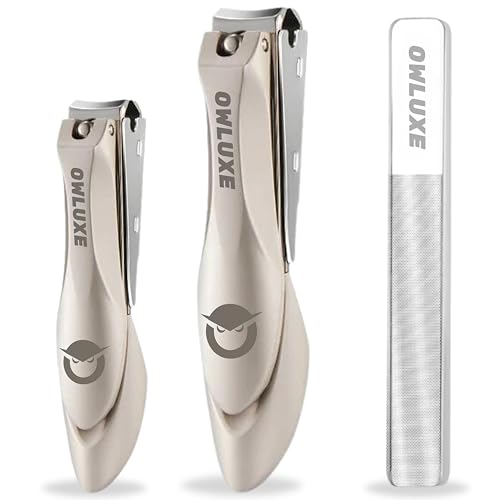 Heavy Duty Nail Clippers Set with Catcher – Wide Jaw Ultra Sharp Edge Fingernail & Toenail Clippers for Thick Nails, includes Nail Files – Complete Nail Kit by Owluxe in Gift Box for Men and Women