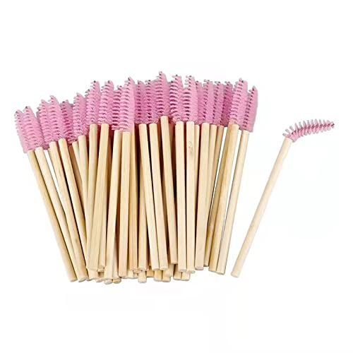 50 Pcs Disposable Eyelash Brushes Bamboo Lash Mascara Wands Eye Lash Eyebrow Applicator Brush for Eyelash Extension Makeup Applicators Kits, pink