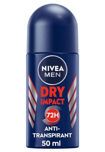 NIVEA MEN Dry Impact Roll-On Deodorant, Antiperspirant for a Dry Skin Feeling, 72h Sweat Protection and Dual Active Formula (50 ml)