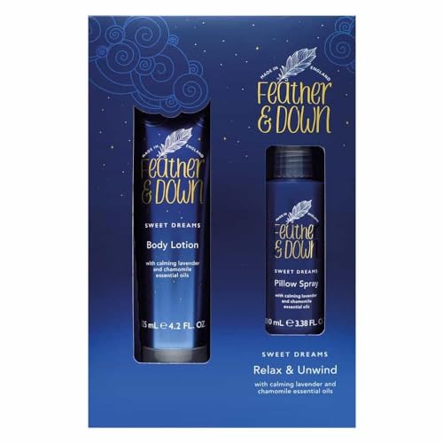 Feather & Down Straight to Sleep Gift Set (50ml Pillow Spray & 50ml Body Lotion) – The perfect sleep duo, infused with lavender & chamomile essential oils. Vegan Friendly & Cruelty Free.