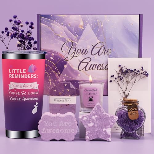 Birthday Pamper Gifts for Women, Unique Bath Sets Self Care Package for Her, Get Well Soon Relaxing Spa Present, Ladies Pamper Hamper Christmas Birthday Gifts for Mum Wife Friend (Lavender)