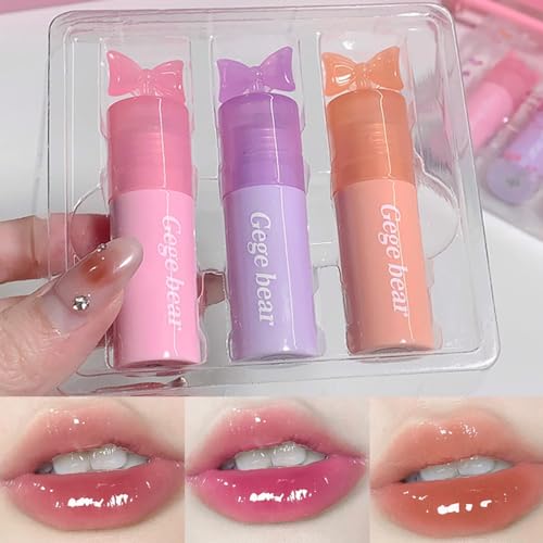Dulele 3 Pcs Cute Glossy Liquid Lipstick Set, Long Lasting Hydrating Watery Finish Lip Gloss, Rich Colour Formula with Vitamin E & Rose Oil, Highly Pigmented Creamy Matte Lip Gloss (Light Pink)