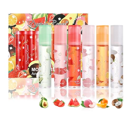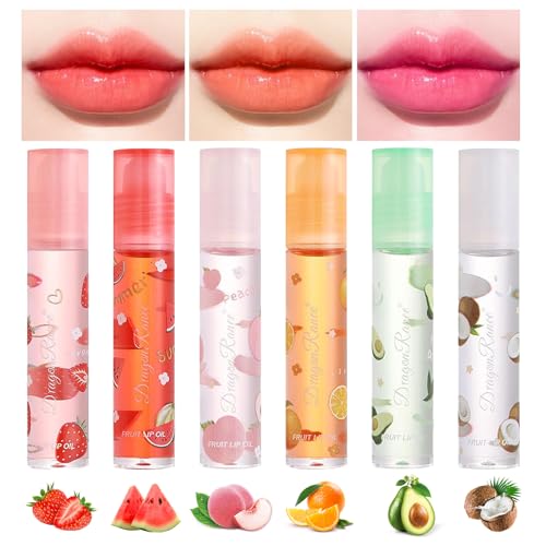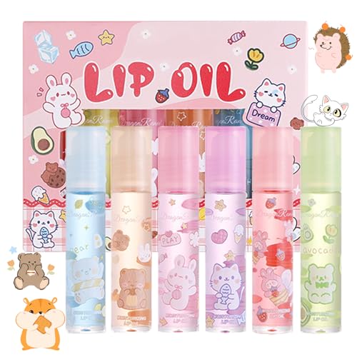 FEXPDL 6pcs Lip Gloss Set Hydrating Lip Oil Set Hydrating Lip Glow Oil Fruit Flavored Moisturizing Lipsticks Lip Gloss Sets For Teenage Girls Long Lasting Lip Glow Balm Lip Care for Women and Girls