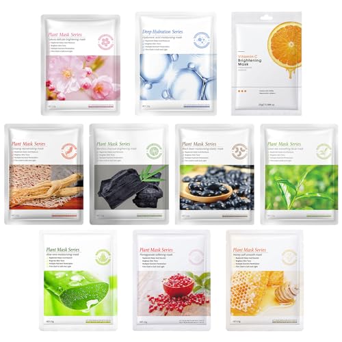 FEXPDL Face Masks Skincare,Sheet Face Mask Hydrating Face Mask Pure Natural Plant Extracts Face Mask Set, Face Masks Skin Care Deep Cleansing Face Mask Beauty for All Skin Types(10 Pcs)