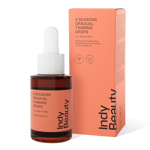 Tanning Drops, 30ml – Fake Tan Bronzing Drops for Face & Body – Add Self Tanning Drops to Skin Care – 100% Vegan & Fragrance-Free – All Skin Types – Natural & Gradual Tan Moisturiser – Indy Beauty
