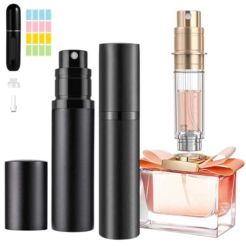 JOOMOKO Perfume Atomiser, Refillable Perfume Travel Bottle, 5ml Portable Perfume Spray Bottle Refill Empty Atomizer Bottle for Travel Accessories Women Men (Black & Black)