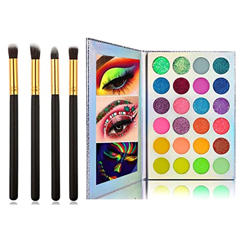 Kalolary Neon Luminous Eyeshadow Palette, UV Glow Blacklight Matte and Sparkling Eyeshadow Glows Iin The Dark, 24 Colors Highly Pigmented Makeup Kit with 4 Black Brushes