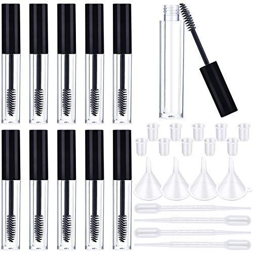 Kalolary 10Pcs 10ml Empty Mascara Tube and Wand Refillable Mascara Tube with Eyelash Wand DIY Eyelash Cream Container Eyeliner Tube Vials Bottle with Rubber Inserts and Funnels Kit