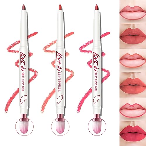 KYDA 3 Colors Lip Liner Pencil, Plumping Liner Pen, Matte Tinted, Silky Smooth Pigment, Ultra Fine Lipliner Pencil with Brush, Lasting Smudgable