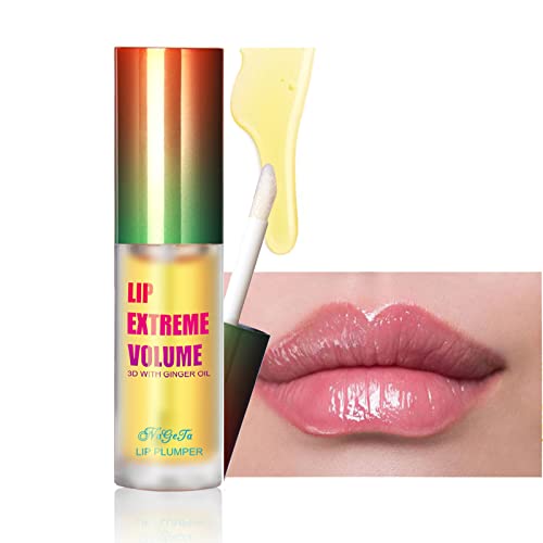 Lip Plumper Gloss,Plumping Lip Gloss High Concentration Ginger Lip Enhancer,Lip Plumper Extreme, Clear Lip Plump Gloss For Fuller & Hydrated Soft,Vegan (Ginger)