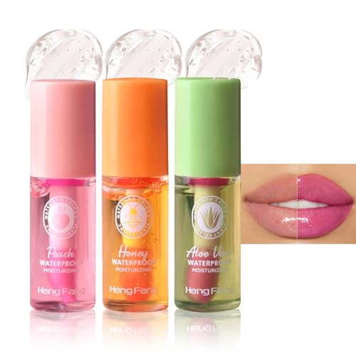 Hydrating Lip Oil Set,3 PC Mini Lip Gloss Set Magic Colour Changing Long Lasting Lipgloss,Lip Balm Fruit-Flavored Lip Care Kit, Aloe Vera/Peach/Honey