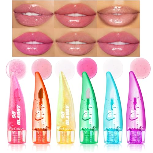 Clear Lip Gloss Sets For Teenage Girls,6 Pcs Flower-Flavored Lip Oil Lovely Gift, No-Sticky Liquid Lipstick,Long Lasting Lip Glow Balm Lip Care,Natural Plant Formula