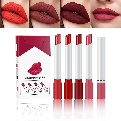 Dark Matte Lipstick Sets, 4 Pcs cigarette red lipstick High Pigmented Velvety Lipstick Gift Set, Lipgloss Long Lasting Non-Fading Waterproof Lipstain,Makeup Sets For Women Gifts Surprise (06)