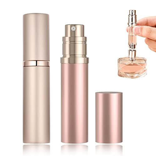 POTWPOT Travel Perfume Refillable Bottle, 2 Pack 5ML Perfume Atomiser Spray Bottle Mini Perfume Bottles Luxurious Mini Perfumes for Women (Golden & Pink)