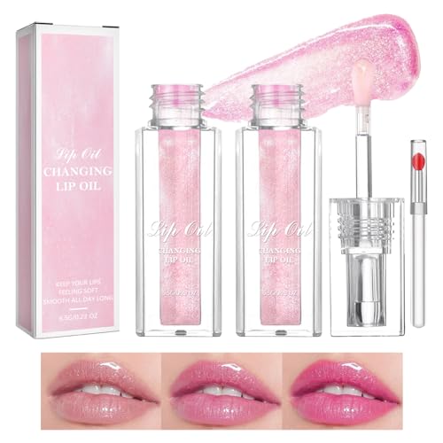 XdealCozyxc 2PCS Magic Colour Changing Lip Oil, Long Lasting Moisturizing Non-Sticky Fresh