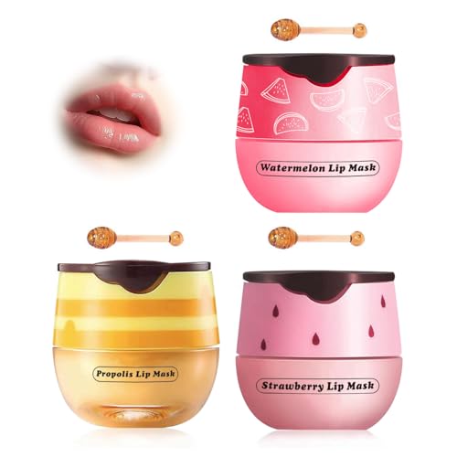 XdealCozyxc 3PCS UK Honeybalm Lip Balm, Honey Strawberry Watermelon Lip Mask, Moisturizing & Hydrate Repair Prevent Dry Cracked Lip Care