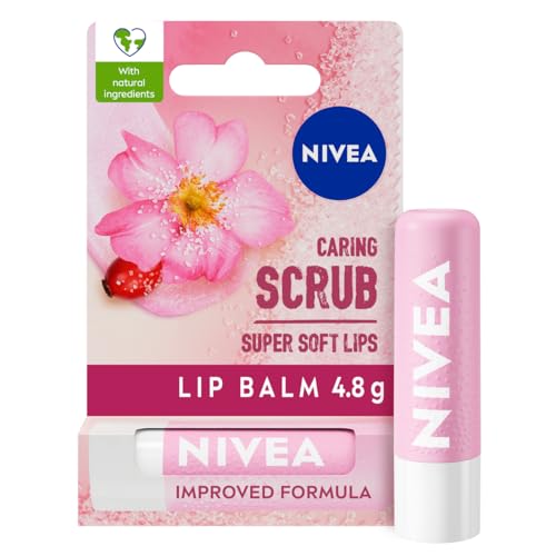 NIVEA 2in1 Caring Lip Scrub (4.8g), Lip Balm with Rosehip Oil and Vitamin E, Gently Exfoliates for Super Soft Lips, Intensive Lip Care, No Need to Wipe Off