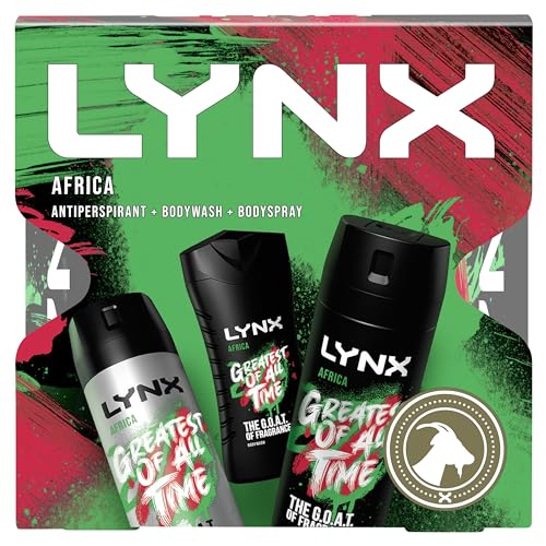 LYNX Africa Trio Deodorant Gift Set Body Wash, Body Spray and Anti-perspirant perfect for his daily routine 3 piece