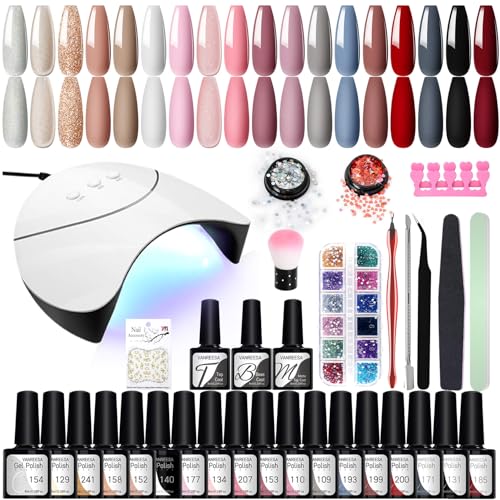 beetles Summer Gel Polish Set- 20 Pcs Pastel Paradise Soak Off Nude Pink Yellow Blue Glitter Gel Nail Polish Kit with Glossy Matte Top Base Gel Coat Manicure Design Gifts for Girls