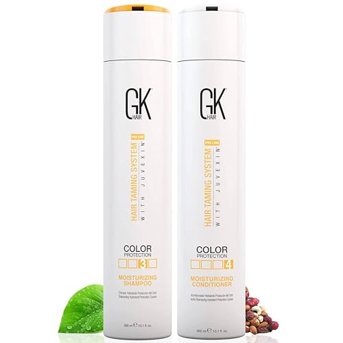 GK HAIR Global Keratin Moisturizing Shampoo and Conditioner Duo 300ml Hydrating Formula for Normal to Dry Hair Colour Protection Infused with Keratin Healthier Sulfate Paraben Free Suitable Men Women