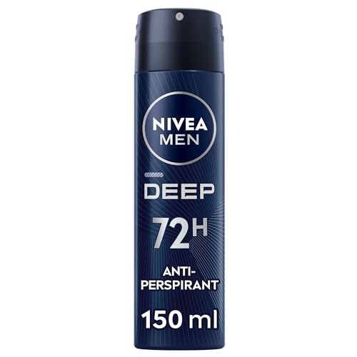 NIVEA MEN DEEP Black Carbon Anti-Perspirant Spray (150ml), Men’s Deodorant Spray with 72H of Protection Against Stains and Odours, Anti-Bacterial, Developed with MAXXTECH Formula