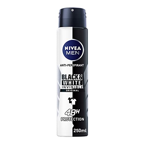 NIVEA MEN Black & White Original Anti-Perspirant Pack of 6 (6 x 250 ml), 72hr Anti-Sweat Deodorant for Men, No Stains on Black and White Clothes