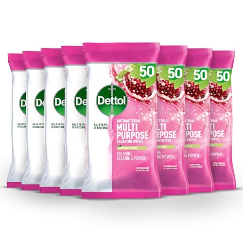 Dettol Antibacterial Surface Cleaning Wipes, Pomegranate, Total 400 Wipes (8 Packs X 50), Anti Bac Wipes, Multi Purpose Wipes, Kills 99.9 Percent of Germs, Disinfectant Wipes